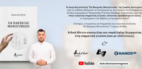 Το site Update Times και οι εκδόσεις Βακχικόν, κληρώνουν αντίτυπα της πρώτης ελληνικής ποιητικής συλλογής με προσβασιμότητα “Εκ Βακχείας Μονογένεση” της Σοφίας Δευτερίγου!